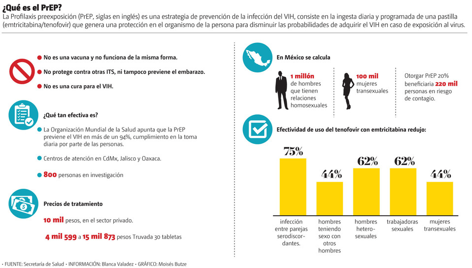 El protocolo de investigación del Prep en México, que involucra a más de 800 personas de poblaciones clave de clínicas de Ciudad de México y Guadalajara, entre ellas a hombres que tienen sexo con hombres (HSH), mujeres transexuales, trabajadoras sexuales, puede contribuir a reducir en 97 por ciento la transmisión del virus de inmunodeficiencia humana (VIH). No obstante, puede elevar otras infecciones de transmisión sexual que son “absolutamente tratables”.