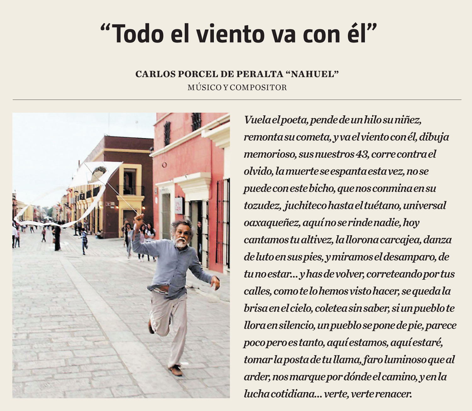 El marimbista mexicano Javier Nandayapa comentó que la conmoción que ha generado a toda la comunidad artística y al país en general el fallecimiento de Toledo, se debe a que “fue un hombre, un gran activista, un luchador social que apoyó a tantas causas, lo que lleva a una irreparable pérdida”.