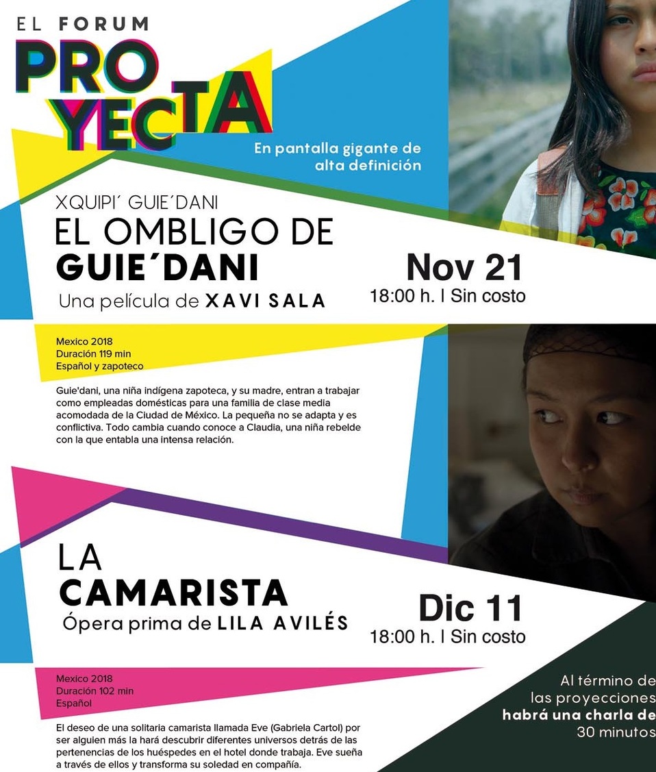 El día del estreno será el próximo 21 de noviembre con la película “El ombligo de Guie’dani” del director español Xavi Sala. Dicha película formó parte de las selecciones oficiales 2018 del Festival Internacional de Cine de Morelia, al igual que del Chicago International Film Festival y Festival de Huelva de Cine Iberoamericano.