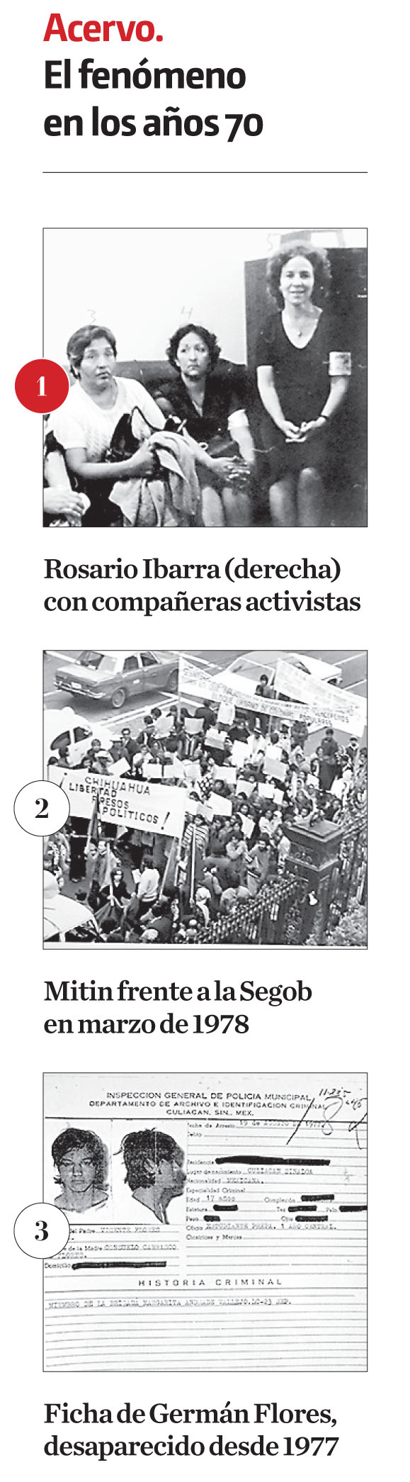Destaca el papel de las madres, esposas, hijas de los desaparecidos, como doña Rosario Ibarra de Piedra y su Comité Eureka, para darle realidad al fenómeno de las desapariciones forzadas.