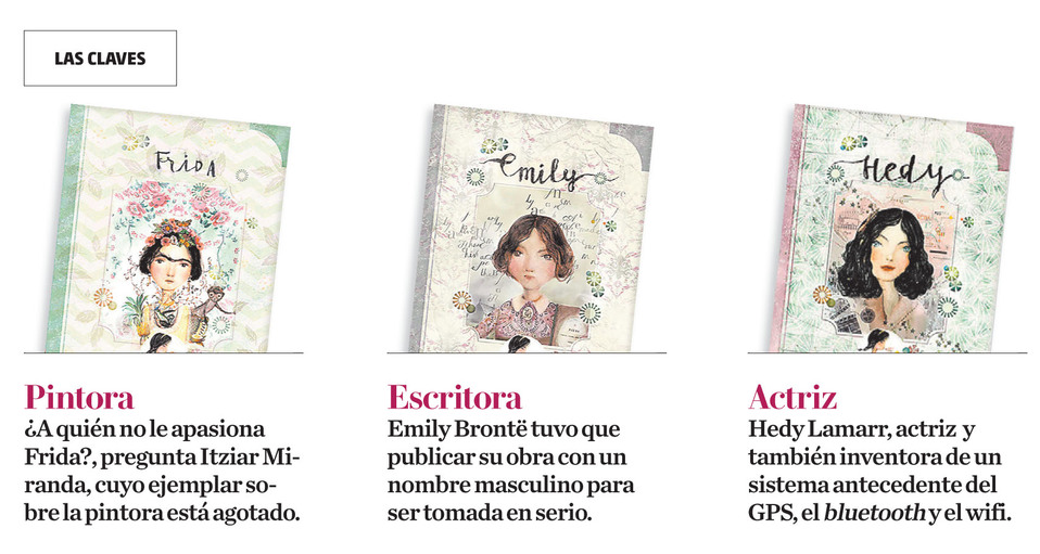 Esta colección de historias, contadas por una niña que se llama Miranda, explica Itziar, “nació por el hecho de que hay miles de mujeres que han sido silenciadas, pero su experiencia debía contarse para inspirar a las niñas a partir de una lista inmensa. Teníamos que empezar por mujeres más o menos conocidas —explica— para que, al final, la mamá y el papá que son quienes compran los libros se acercaran a algo que no fuera desconocido. Entonces si ven un libro con el nombre de Frida Kahlo lo adquieren porque quieren que sepan quién es la pintora”.