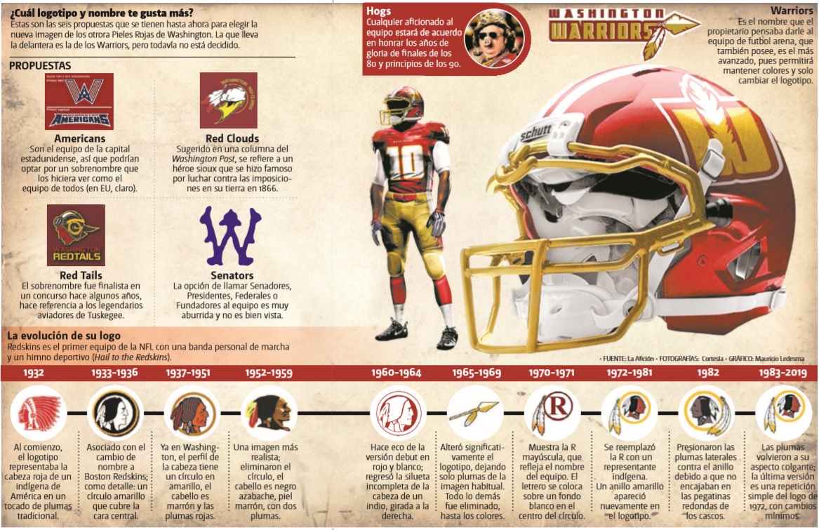 Llegó el día. El equipo de futbol americano de la ciudad de Washington ya no llevará el nombre de Pieles Rojas, el cual lo acompañó por 87 temporadas como franquicia y durante las 83 que han estado en la capital de los Estados Unidos. Washington sigue, pero como Pieles Rojas, no más.