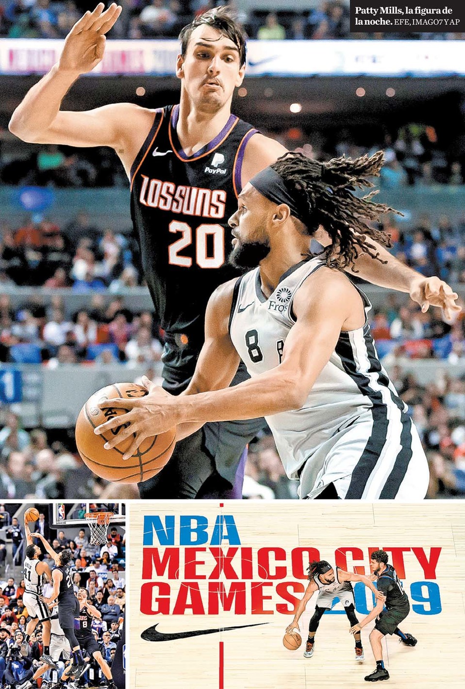 La ausencia de Devin Booker ensombreció un poco el panorama del segundo juego de la NBA en México en 2019, pero la calidad de los Suns y Spurs entregó un espectáculo que hizo, en el mejor sentido, que nadie lo extrañara, pues en el primer partido decidido en tiempo extra de la NBA en México, San Antonio superó 121-119 a Phoenix.
