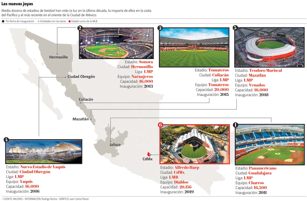 El próximo 23 de marzo, los Diablos Rojos del México inaugurarán el flamante estadio Alfredo Harp Helú, lo que significa que está por estrenarse el sexto nuevo parque de beisbol en el país en lo que va de esta década, aunque el primero para una novena de la Liga Mexicana de Beisbol.