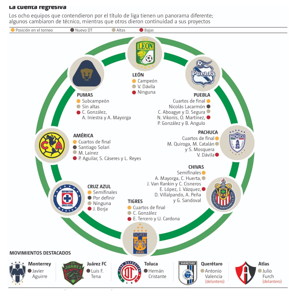 A tan solo seis días del silbatazo inicial, con el Puebla-Chivas en el estadio Cuauhtémoc, comenzará una temporada que concluirá hasta el próximo 30 de mayo, donde León aspira llegar de nueva cuenta al último partido para revalidar su corona, mientras que los otros 17 desean escribir su nombre como el nuevo monarca de la Liga Mx.