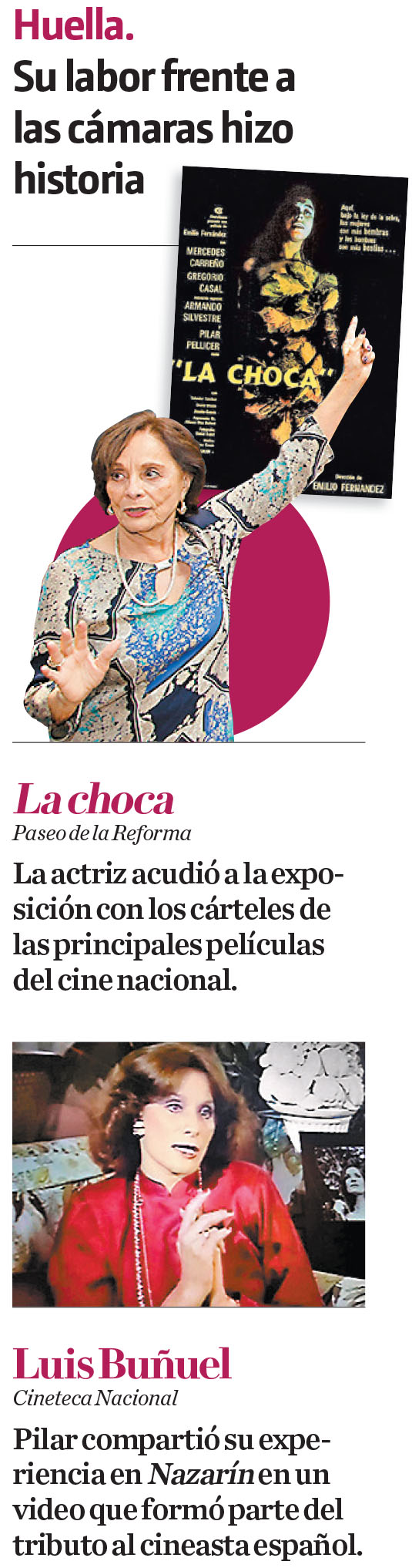 Pilar Pellicer, cuya noticia de su muerte por covid-19 a los 82 años sorprendió ayer, decía que su participación en la cinta Nazarín de Luis Buñuel, en 1959, dando vida a Lucia, “aunque breve”, había sido el detonante para la historia que escribió en el mundo de la actuación.