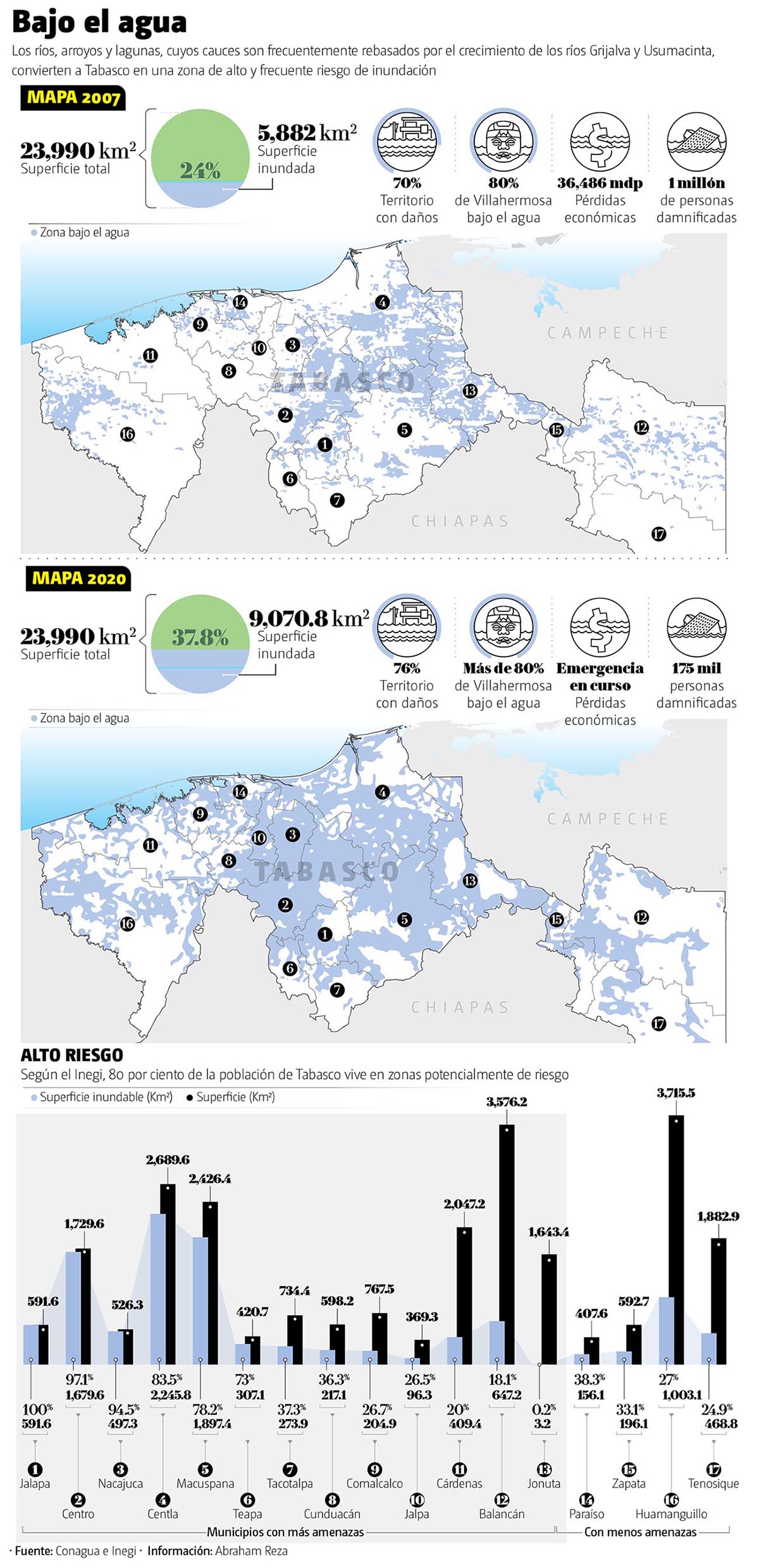Sin embargo, en 2007 Tabasco sufrió la peor inundación de su historia, cuando las anegaciones impactaron a 70 por ciento de su territorio y en Villahermosa el nivel del agua cubrió a 80 por ciento de la ciudad.