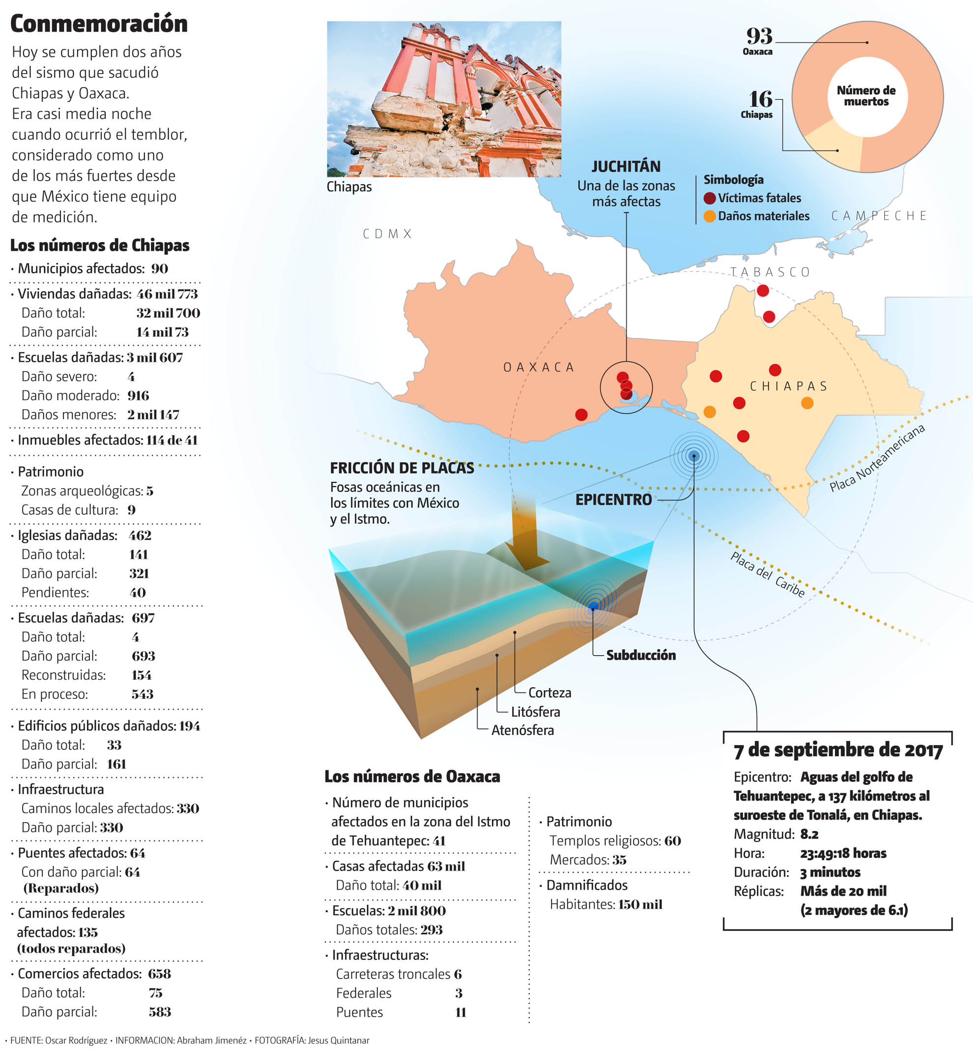 Hoy, sábado, el presidente López Obrador asistirá para conmemorar los dos años del sismo del 7 de septiembre y los constructores planean recibirlo con una protesta, quieren que les paguen las obras realizadas y por las que nunca firmaron un contrato; la reconstrucción se detuvo hace seis meses por falta de pagos.