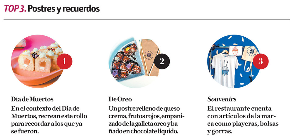 Sushin González es un establecimiento que resalta las festividades mexicanas, pues a partir de este mes lanzó el Amairoll, un rollo con ate de membrillo, queso panela, crema pastelera, azúcar, canela y un toque de naranja.