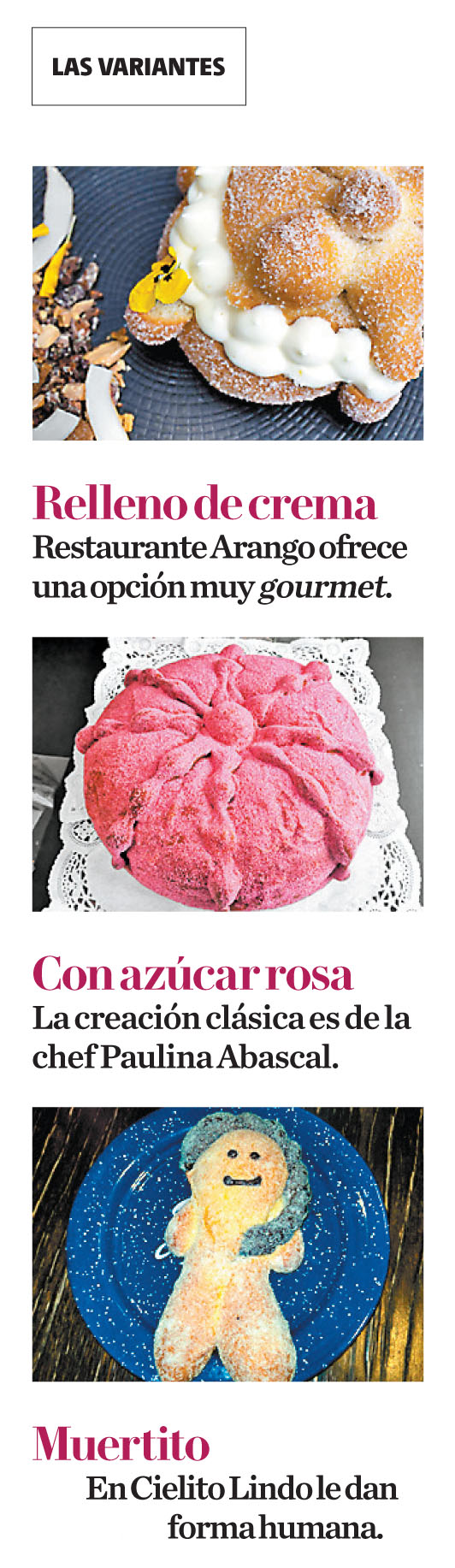 Con los años, el pan de muerto ha experimentado variantes, pues algunos chefs han hecho su propia creación para darle un toque gourmet. Tal es el caso del chef Alejandro Cuatepotzo, (de los restaurantes Arango, en CdMx, y Antonia, en San Miguel de Allende).