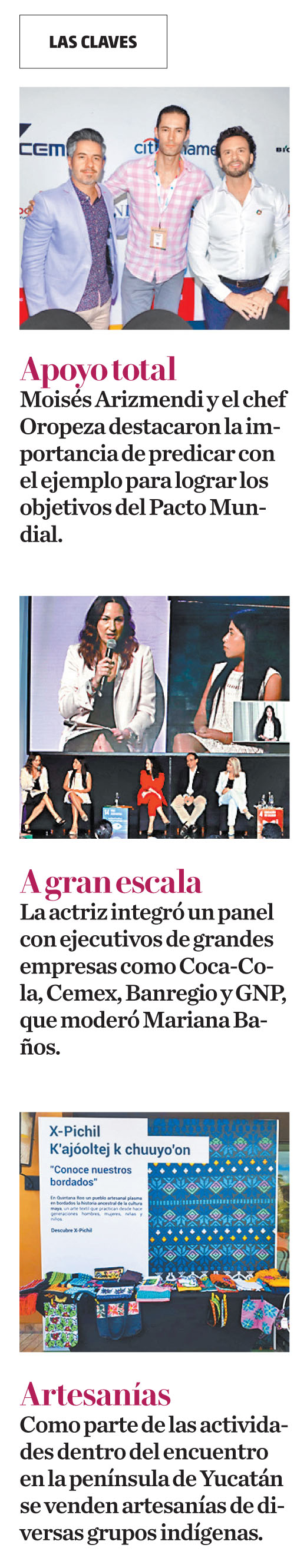 La actriz solicitó a los medios que sean más incluyentes, para que de esa forma se conozca la labor de todos los mexicanos. “Es un buen trabajo que podrían hacer ustedes, hablar de toda la diversidad, ser más incluyentes, compartir las noticias reales”, antes de encabezar un panel, como parte de las actividades del Pacto Mundial México.