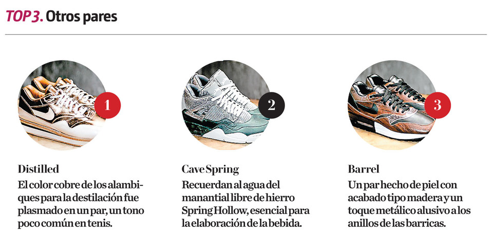 “La suela de cuero y la parte inferior negra muestra una botella cobrando vida”, según Ciambrone. El cuero marrón representa al whisky mientras que el blanco y el negro simulan la etiqueta, además, puedes sentir la textura de los logotipos que sobresalen en la botella.
