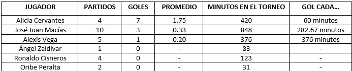 Con estos números, ningún atacante del primer equipo de las Chivas se le puede comparar a Alicia Cervantes; de los cinco delanteros que el Guadalajara tiene registrados ante la Liga MX, entre todos reúnen sólo cuatro anotaciones.