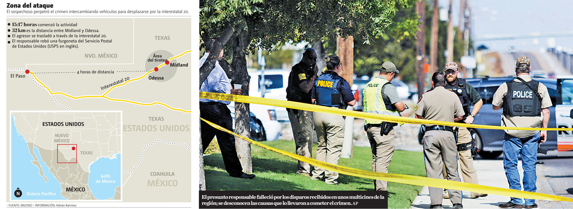 Matanza a cuatro horas de El Paso. El ataque, perpetrado en las ciudades de Odessa y Midland, inició cuando un agente ordenó el alto al vehículo del agresor.
