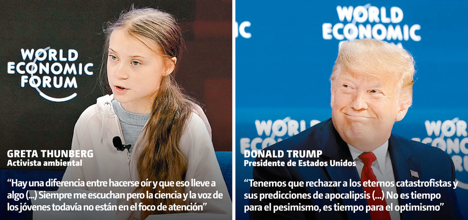 Donald Trump y Greta Thunberg expusieron este martes sus posturas radicalmente opuestas sobre el cambio climático en el foro de Davos, donde el presidente estadunidense denunció a los “catastrofistas” y la joven activista sueca lamentó, en contraste, que “no se ha hecho nada” por el planeta.