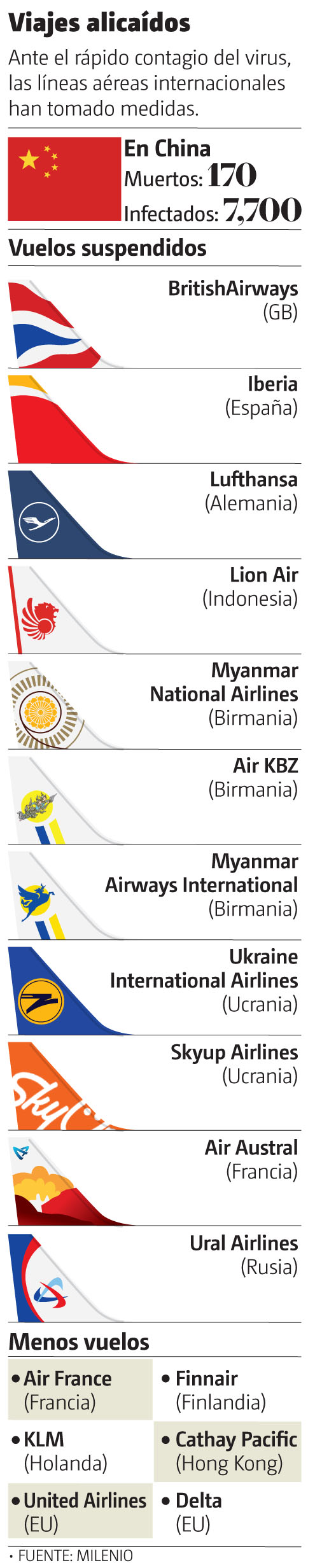 Otras aerolíneas, como Air France, United Airlines, Delta y KLM, han reducido sus vuelos a los principales aeropuertos chinos y cancelado la ruta a Wuhan, ciudad donde inició la propagación del nuevo coronavirus.