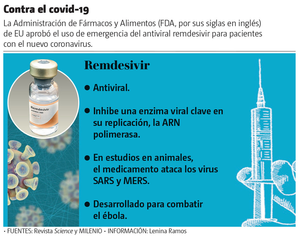Ese medicamento experimental, desarrollado para curar a los enfermos de ébola, es el primer tratamiento que demuestra su eficacia contra el nuevo coronavirus; según un estudio llevado a cabo por los institutos de salud estadunidenses, acorta varios días la recuperación de los enfermos de covid-19.