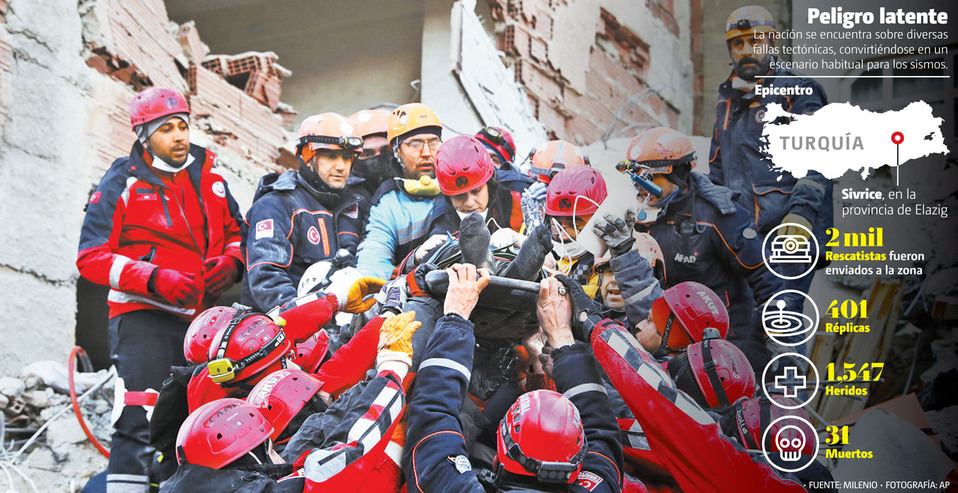 Al menos 31 personas han muerto y ya son más de mil 500 los heridos a causa de un terremoto de magnitud 6.5 registrado el viernes por la noche en el este de Turquía, según el último balance emitido por las autoridades del país.