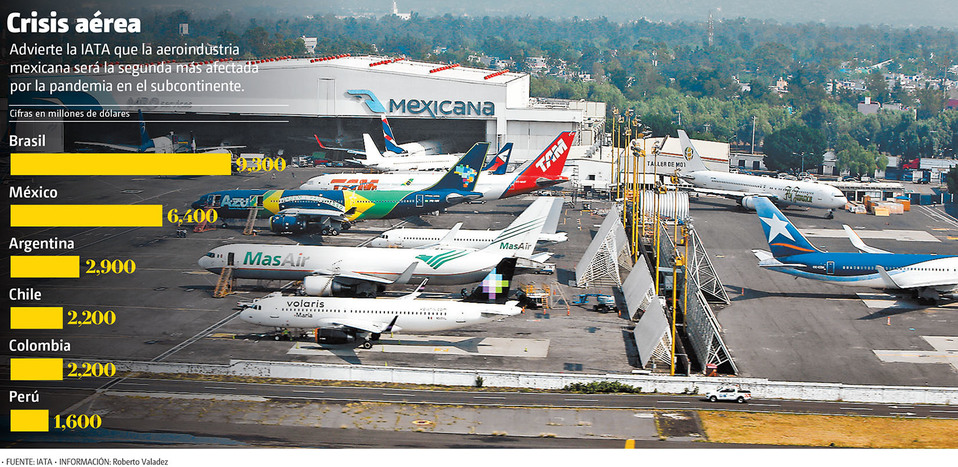 Crisis aérea. Advierte la IATA que la aeroindustria mexicana será la segunda más afectada por la pandemia. (Especial | Gráfico: MILENIO)
