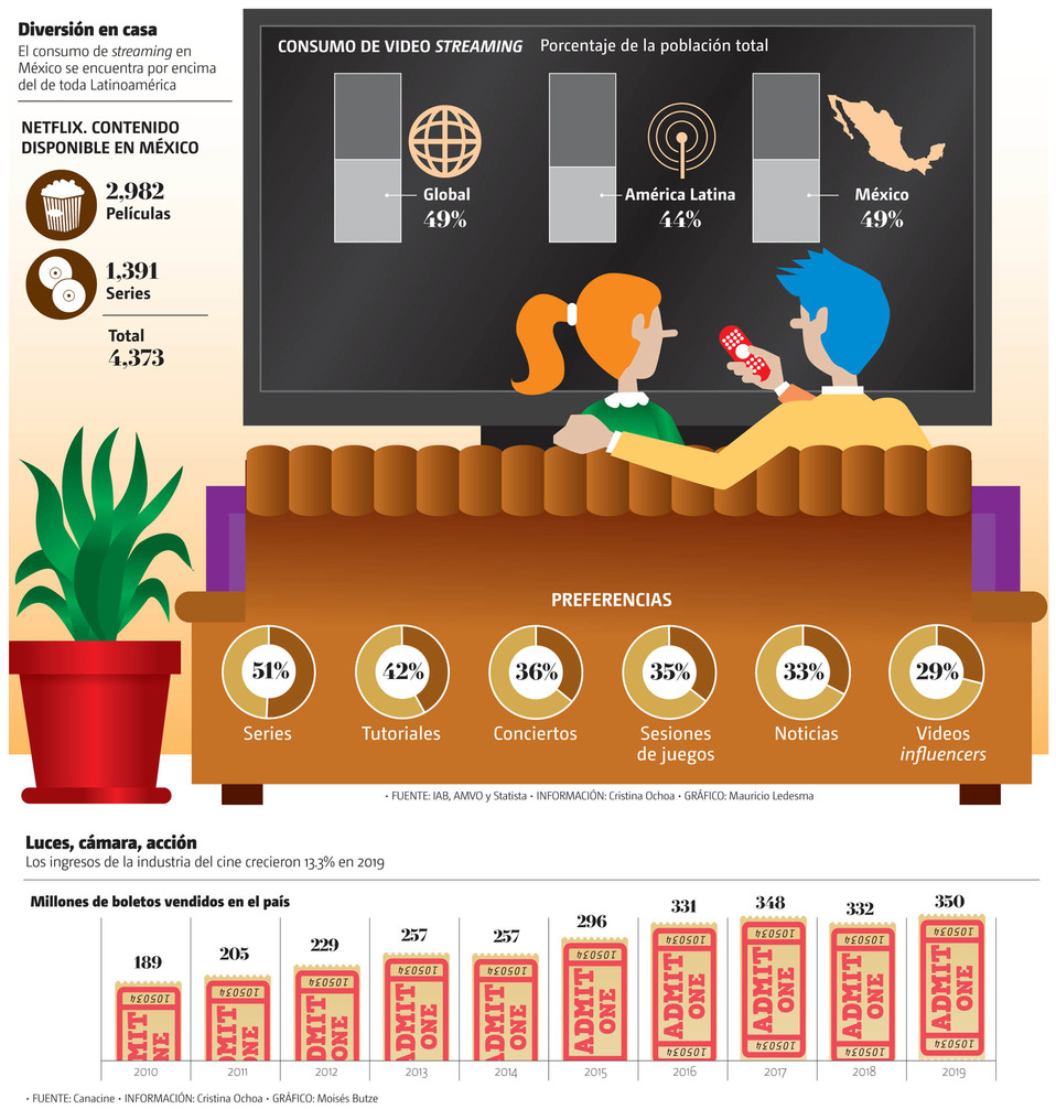 En México la batalla tampoco tiene un ganador y por el contrario, para los productores se abrieron más pantallas. El año pasado los ingresos en taquilla para las salas de cine alcanzaron 19 mil 50 millones de pesos (mdp), un alza de 13.3 por ciento en comparación con 2018. Durante 2019 el número de boletos vendidos alcanzó 350 millones de unidades, un crecimiento de 5.4 por ciento, en relación con los resultados de 2018, de acuerdo con cifras de la Cámara Nacional de la Industria Cinematográfica (Canacine).
