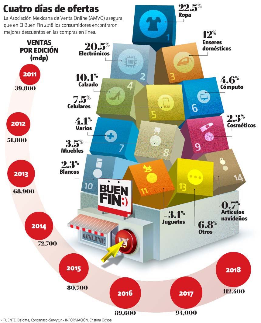 Buen Fin fue una propuesta de reactivación económica que vio la luz en 2011, que ha servido no solo para acelerar el consumo de fin de año sino también para acelerar el crecimiento del comercio online, canal de venta que en este 2019 espera un crecimiento mayor al estimado para la novena edición de la temporada de descuentos.