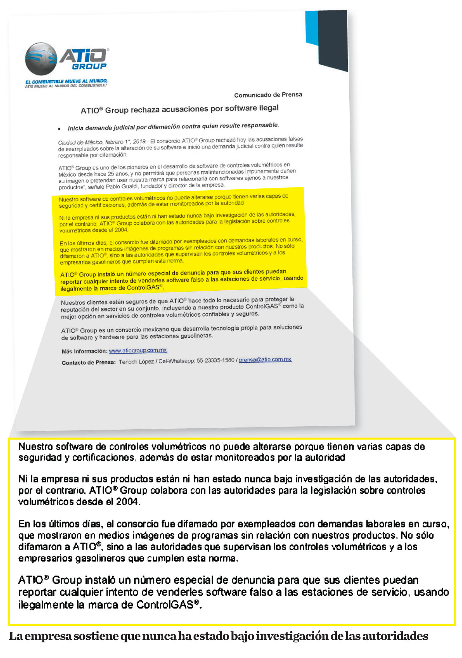 Con más de cinco mil gasolineras en su cartera de clientes, de las más de 12 mil que hay en todo el territorio, el desarrollador del software ControlGas aseguró, a través de su presidente, Pablo Gualdi, que no permitirá "que personas malintencionadas impunemente dañen su imagen o pretendan usar nuestra marca para relacionarla con softwares ajenos a nuestros productos”.