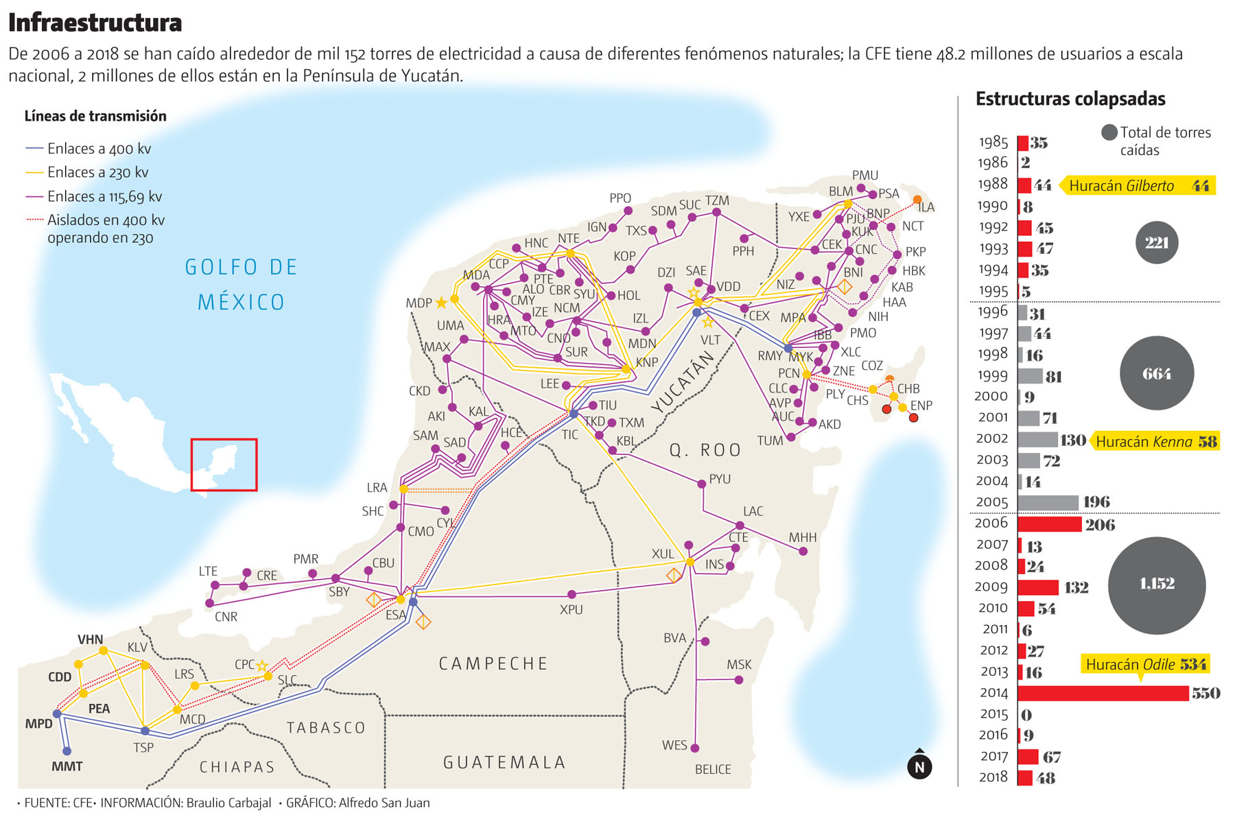 Por otra parte, Noé Peña dijo que la CFE trabajará en el reforzamiento de la línea de transmisión que va a la península de Yucatán, para lo cual se necesitará una inversión de 2 mil millones de pesos y estará lista en dos años.