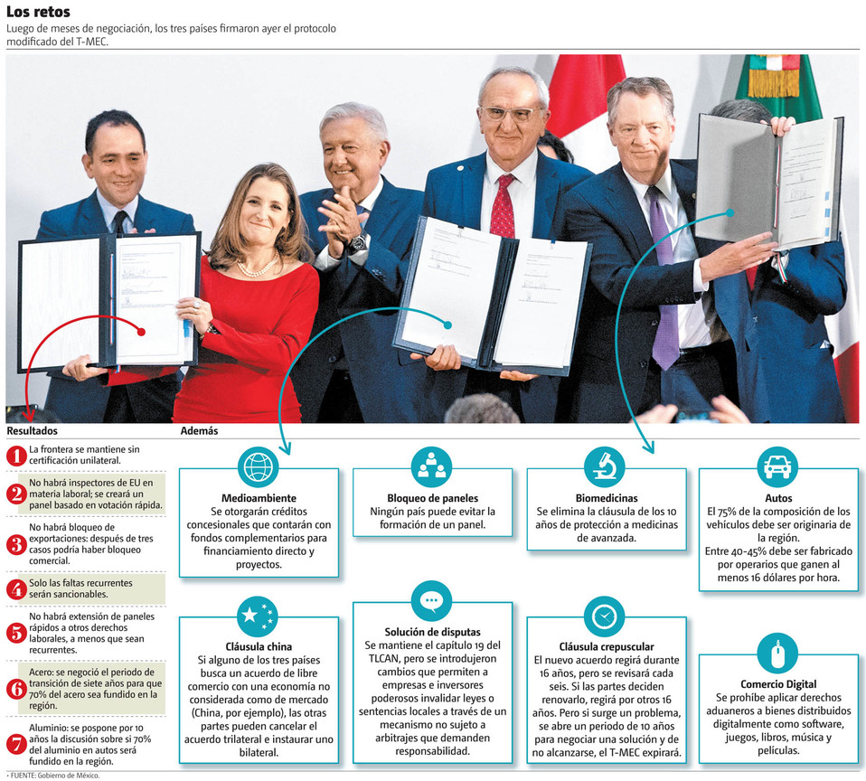 Junto al canciller mexicano, Marcelo Ebrard, Seade detalló la versión definitiva del T-MEC, firmada ayer tras un año de negociaciones para lograr el apoyo del Partido Demócrata; el acuerdo se cerró en noviembre de 2018.