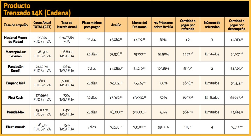 La dependencia, a cargo de Ricardo Sheffield Padilla, visitó en diciembre diversas casas de empeño de la Ciudad de México y comparó cuánto dinero prestan y qué interés cobran por empeñar los mismos productos.