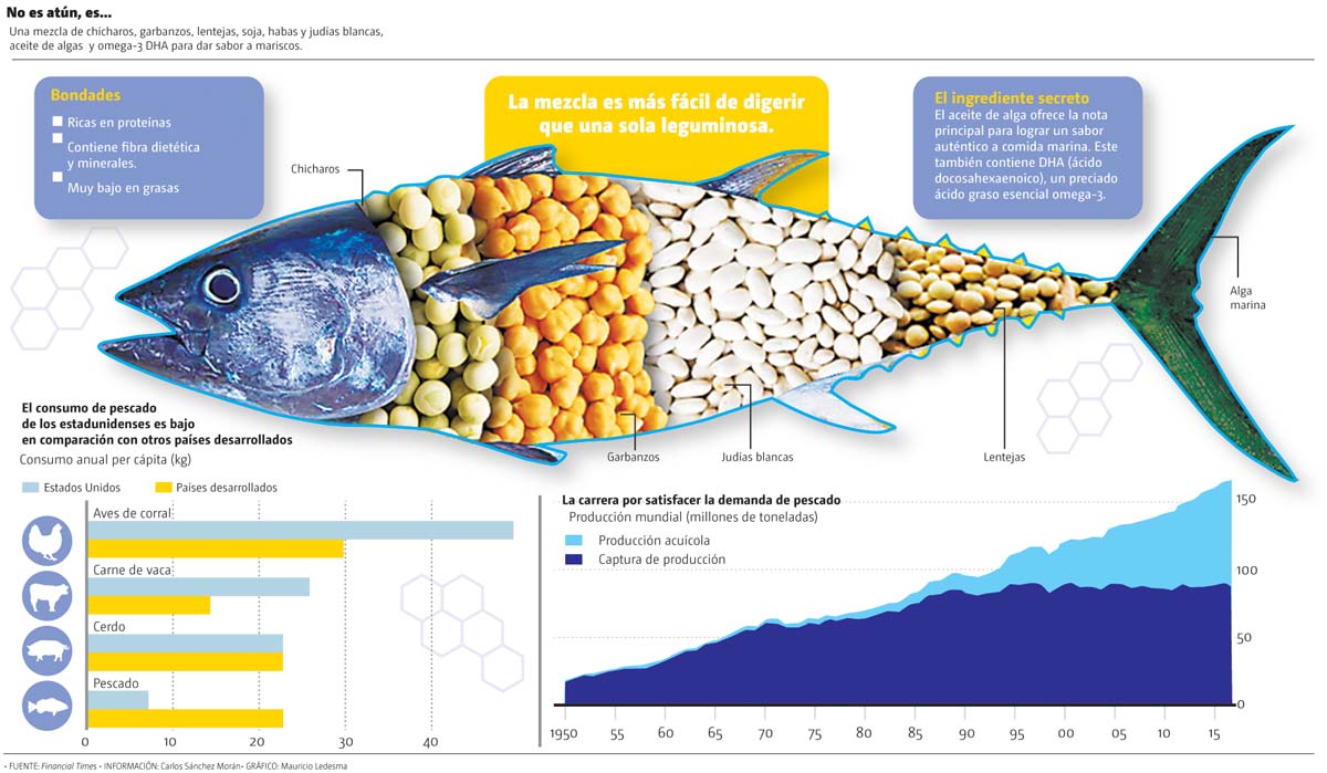 Es un mercado incipiente, las ventas anuales de sustitutos de pescado en Estados Unidos apenas se encuentran en alrededor de 10 millones de dólares en comparación con 800 mdd para la carne de origen vegetal, de acuerdo con Good Food Institute, un grupo de asesoría y cabildeo de proteínas alternativas.