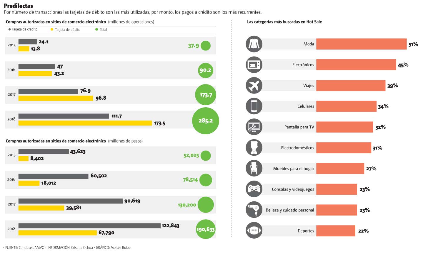 De acuerdo con datos de la Comisión Nacional para la Protección y Defensa de los Usuarios de Servicios Financieros (Condusef) el año pasado durante la quinta edición de la propuesta de la AMVO se intentaron realizar 449.5 millones de operaciones de compra en sitios de comercio electrónico, de las cuales 63 por ciento (285.2 millones) resultaron exitosas.