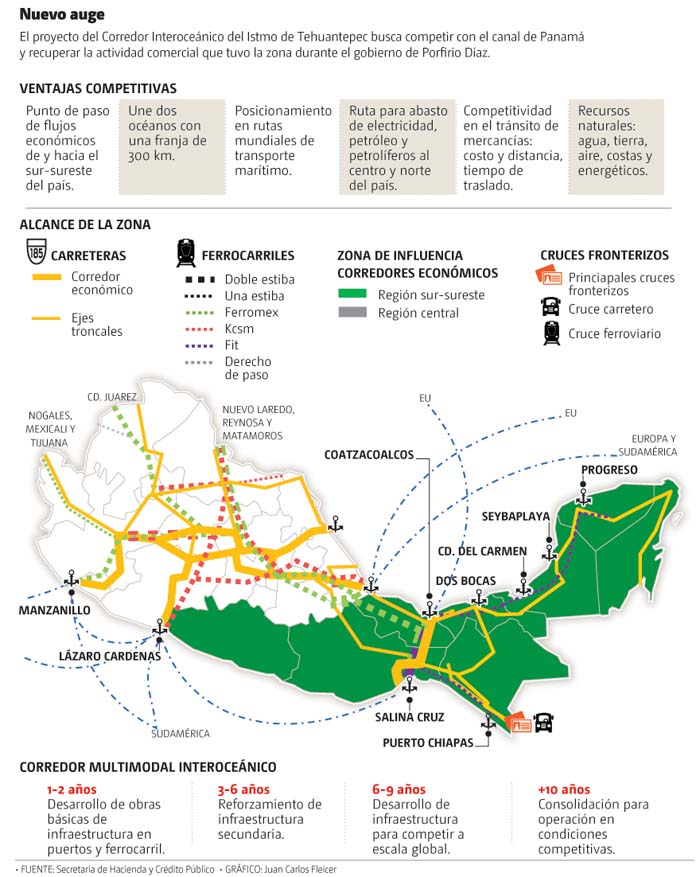 El titular de Zonas Económicas Especiales de la Secretaría de Hacienda, Rafael Marín Mollinedo, encargado del proyecto del corredor, comentó: “Vamos a reactivar el corredor multimodal interoceánico que ha estado detenido desde la apertura del canal de Panamá. En tiempo de Porfirio Díaz tuvo mucha actividad en el cruce de mercancías, pero a partir de la apertura del canal perdió importancia y se dejó de lado”.