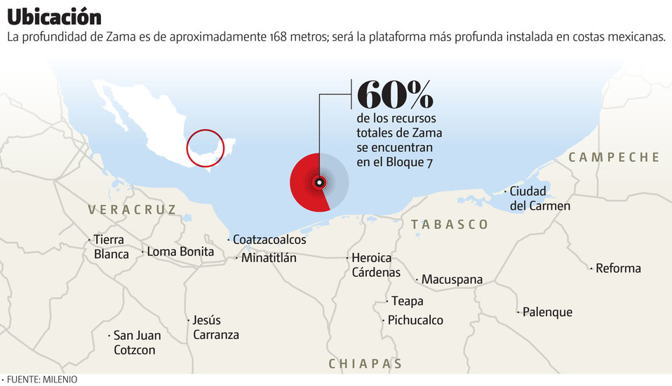 La compañía que tiene 35 por ciento de un consorcio con Sierra Oil & Gas, una firma de Wintershall DEA, y Premier Oil, informó que 60 por ciento de los recursos totales de Zama se encuentran en el bloque 7, un contrato que ganaron en la Ronda 1.1, la primera licitación pública internacional para la exploración y extracción de hidrocarburos en la historia de México.