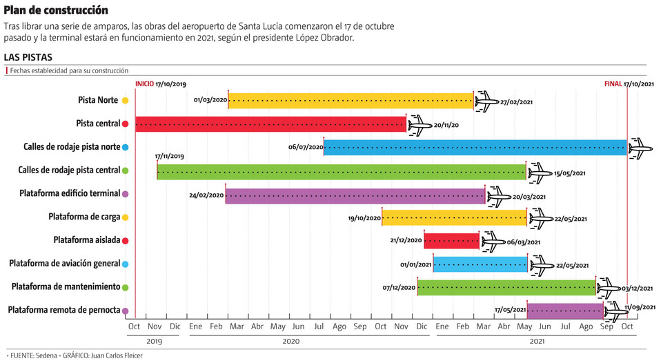 “Es precisamente hasta la última fase, con la construcción de la pista 3 que se tiene considerado agregar capacidad a la pista 1, de este modo las pistas 1 y 3 funcionarán de manera dependiente, pero esta dupla trabajará de manera independiente y con operaciones simultáneas respecto a la pista 2, a fin de cubrir la demanda máxima del aeropuerto en su etapa final”, puntualizó la Sedena.