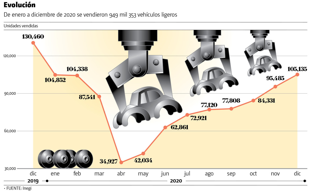 Para este año, la expectativa de la industria es de una comercialización de un millón 65 mil unidades, lo que significará un crecimiento de 12.6 por ciento, respecto a 2020.