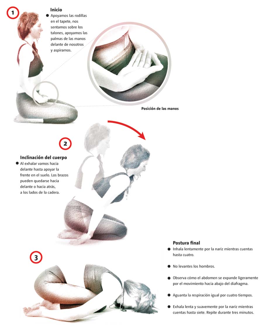 La postura del Niño puede resultar un refugio para replegarnos cuando las cosas afuera parecen tornarse caóticas, siendo que también revitaliza y ayuda en los procesos naturales de sanación del cuerpo. Pero además podemos acompañar la postura con la técnica de respiración alargada, que consiste en prolongar el tiempo de exhalación, lo cual tiene un efecto calmante sobre cuerpo y mente.