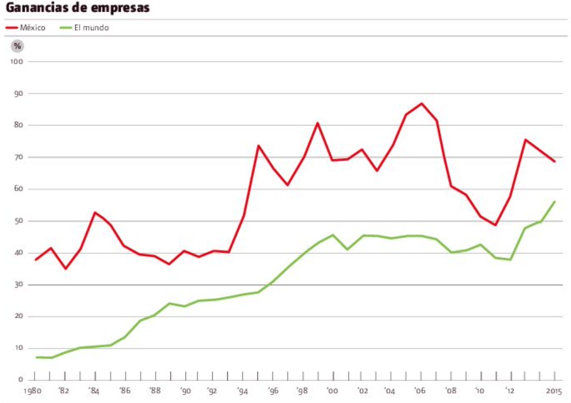 Fuente: Ríos, V. (2021) “Cultura del privilegio y simbiosis entre poder político y poder económico en México”, Estudios y Perspectivas-Sede Subregional CEPAL, 193, CDMX; con datos de De Loecker, J. y J. Eeckhout (2018) “Global market power”, NBER Working Paper 24768.