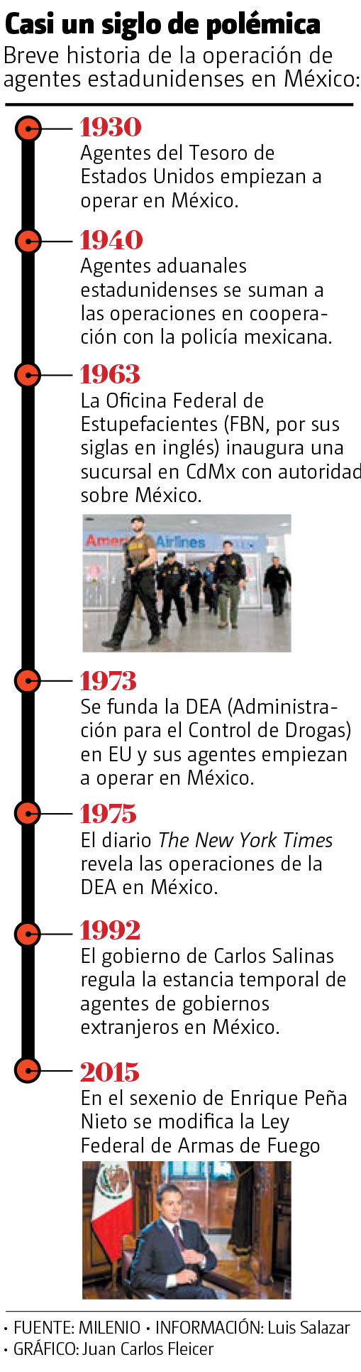 La presencia en México de los agentes de la DEA (Administración para el Control de Drogas de Estados Unidos) acumula un historial de acciones fuera de la ley, entre las que se encuentran secuestros, usurpación de funciones e identidad y hasta intervención ilegal de comunicaciones.