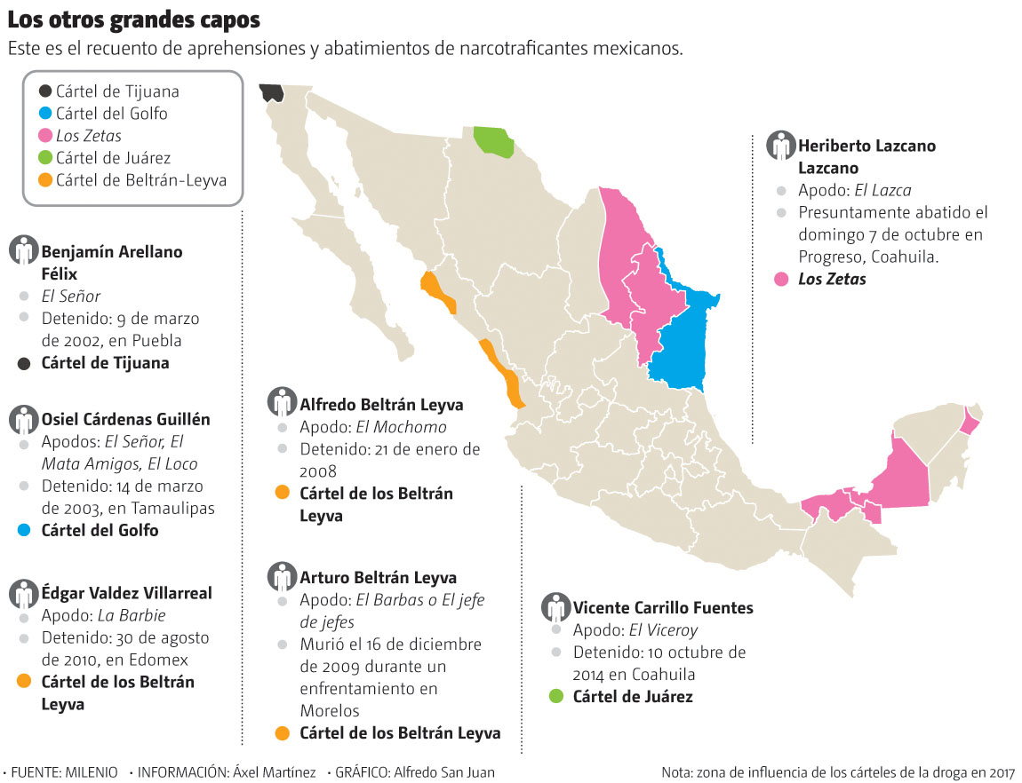 En México hay tres capos del narco considerados relevantes; dos son los más longevos y aún dominan gran parte del país: