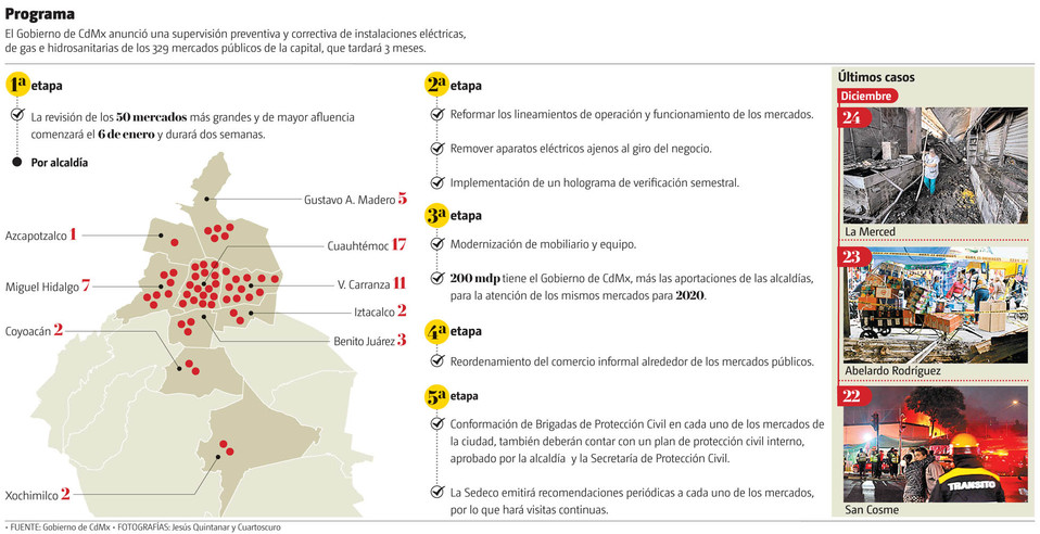 Por ello, se inició una revisión de las instalaciones eléctricas en 50 mercados, de los 329 que existen en la ciudad, la cual tardará dos semanas y media; después se supervisará el resto en un máximo de tres meses.