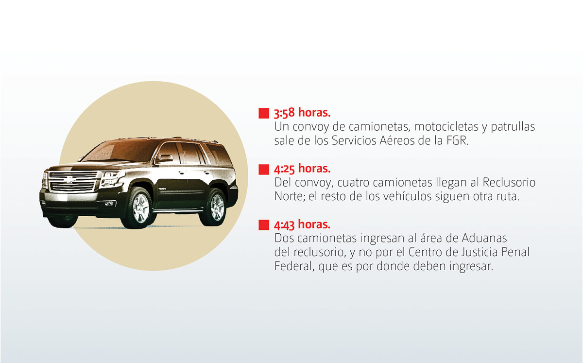 A las 3:58 horas del viernes, una caravana de vehículos oficiales salió del hangar con una persona al interior que hacía suponer era Emilio Lozoya, por lo que fue seguido por los reporteros hasta el Reclusorio Norte.