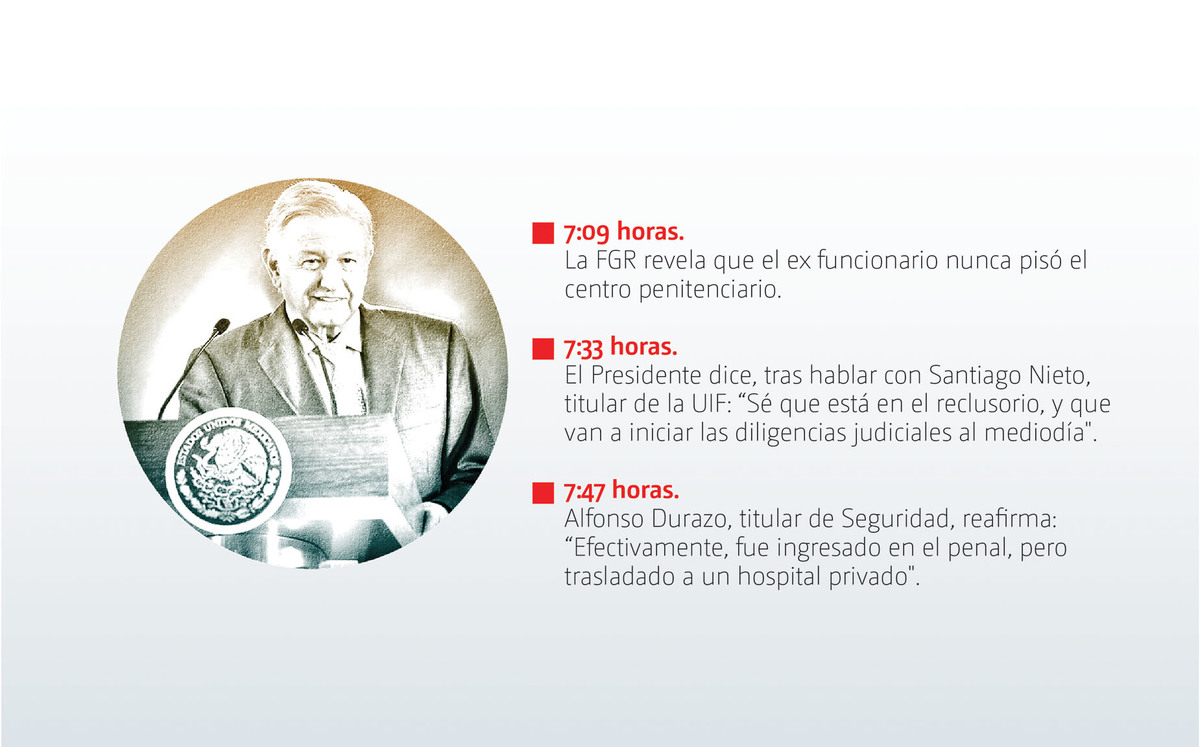 Durazo: Bueno, ese es el de CdMx, el Reclusorio Norte. Efectivamente, fue ingresado en este penal, pero trasladado inmediatamente a un hospital privado por algunas molestias que presentó.