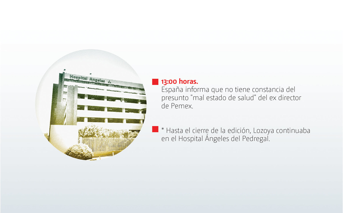 En tanto, las Instituciones Penitenciaria españolas negaron que Lozoya hubiera tenido malestares durante su estancia en prisión; sin embargo, la Policía Nacional indicó que su trabajo consistió solamente en trasladarlo de la cárcel al aeropuerto de Madrid-Barajas, por lo que desconocía la situación.