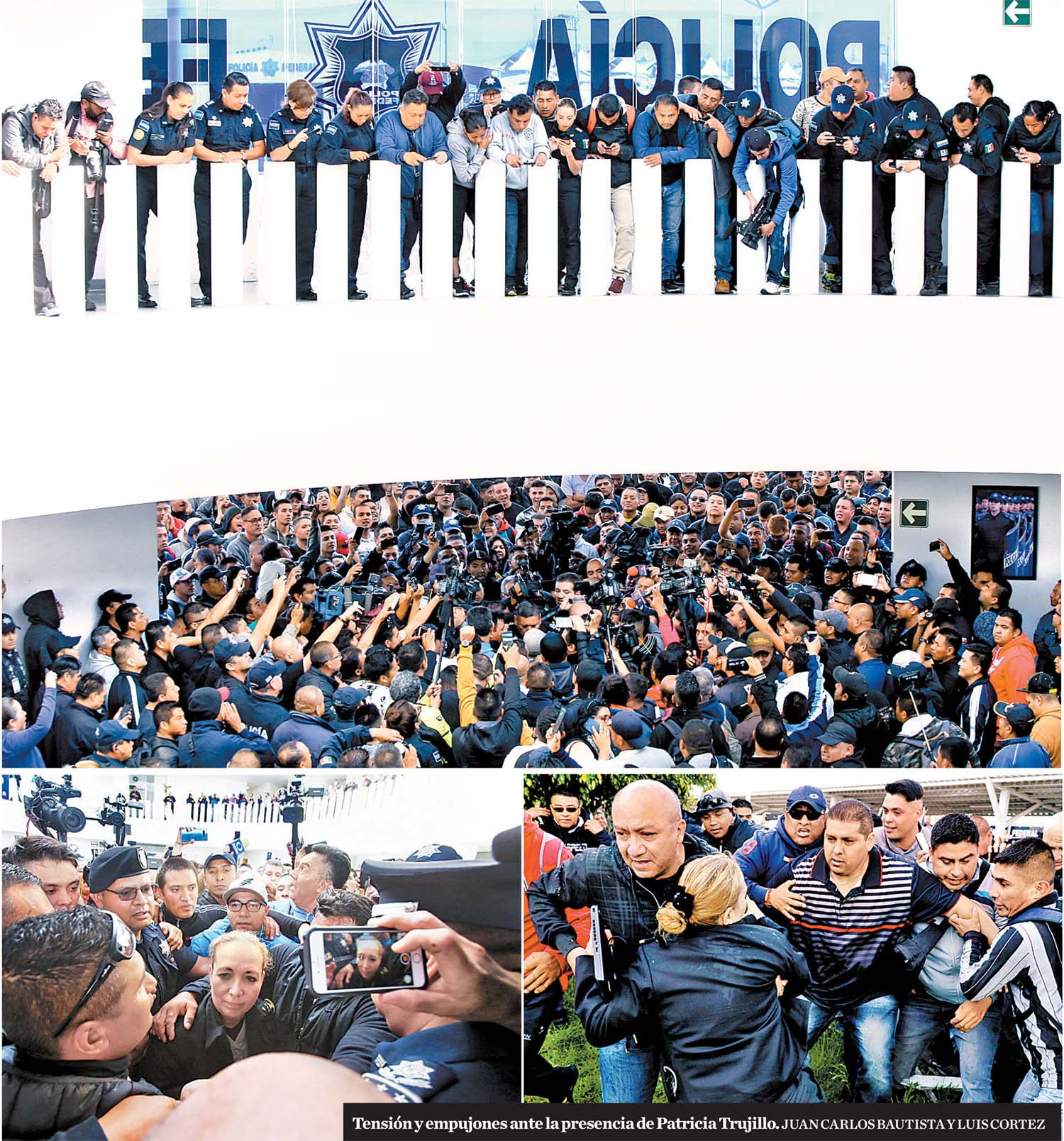 El punto álgido de la protesta se dio a las 10 de la mañana: Patricia Trujillo, coordinadora Operativa de la Guardia Nacional, se presentó en las instalaciones y fue agredida por los uniformados, quienes al grito de “¡traidora, traidora!” la empujaron y provocaron que cayera.