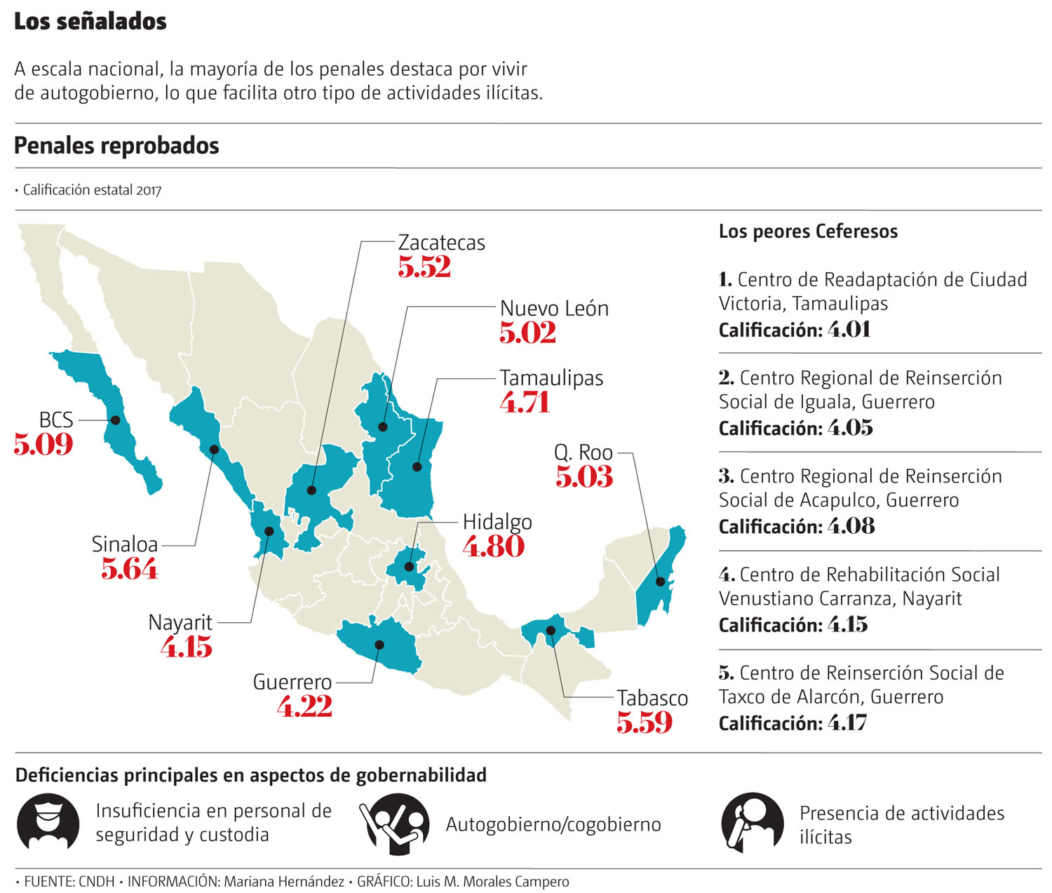 “Lamentablemente los penales del país están marcados por la corrupción y esos altos índices de corrupción se traducen en que hoy, penosamente, 50 por ciento del crimen organizado se administre desde dentro de las instalaciones de los penales. Esto es un ejemplo del reto que tenemos enfrente”, puntualizó.