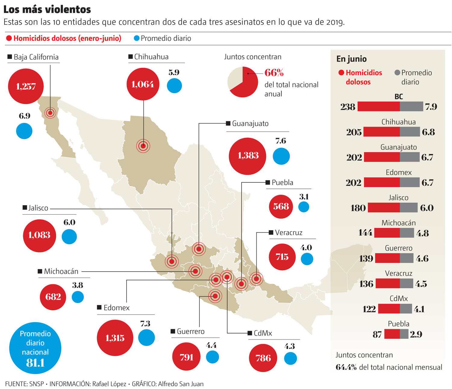 El presidente Andrés Manuel López Obrador dijo ayer que hay 10 estados que “alteran” el promedio nacional de homicidios, debido a que concentran los mayores niveles de violencia en el país.