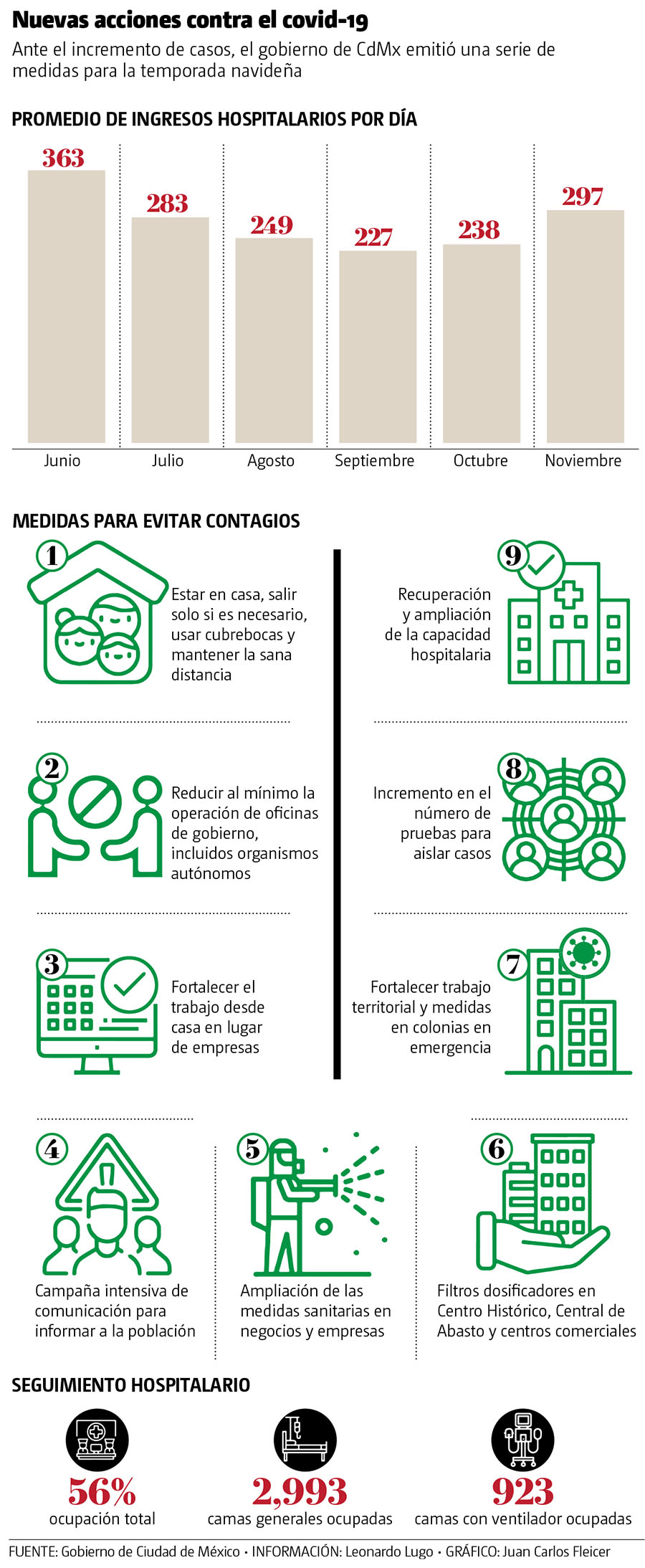 Pero remarcó que en su administración “no se van a limitar las libertades con medidas coercitivas ni restricciones como el toque de queda”, porque él está convencido de que el pueblo de México “es responsable, educado y consciente” de la situación sanitaria y remarcó que “los capitalinos son muy fraternos y respetuosos, y están muy informados y despiertos”.