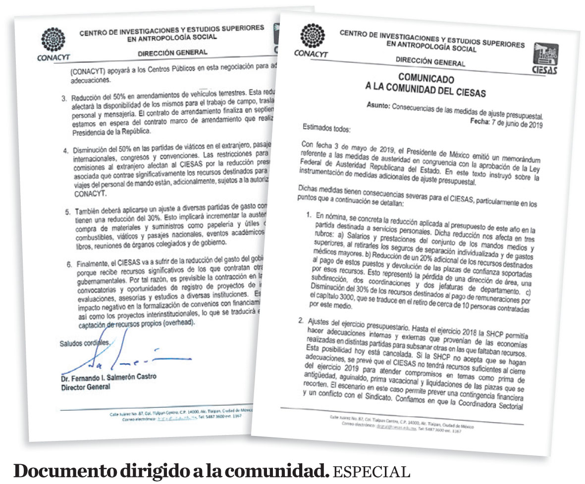 En un documento, dirigido a la comunidad del Ciesas, reconoce que las medidas de ajuste financiero tendrán “consecuencias severas” y anuncia recortes a mandos medios y la eliminación de la Dirección Académica que, en opinión de investigadores, representa un “duro golpe”.