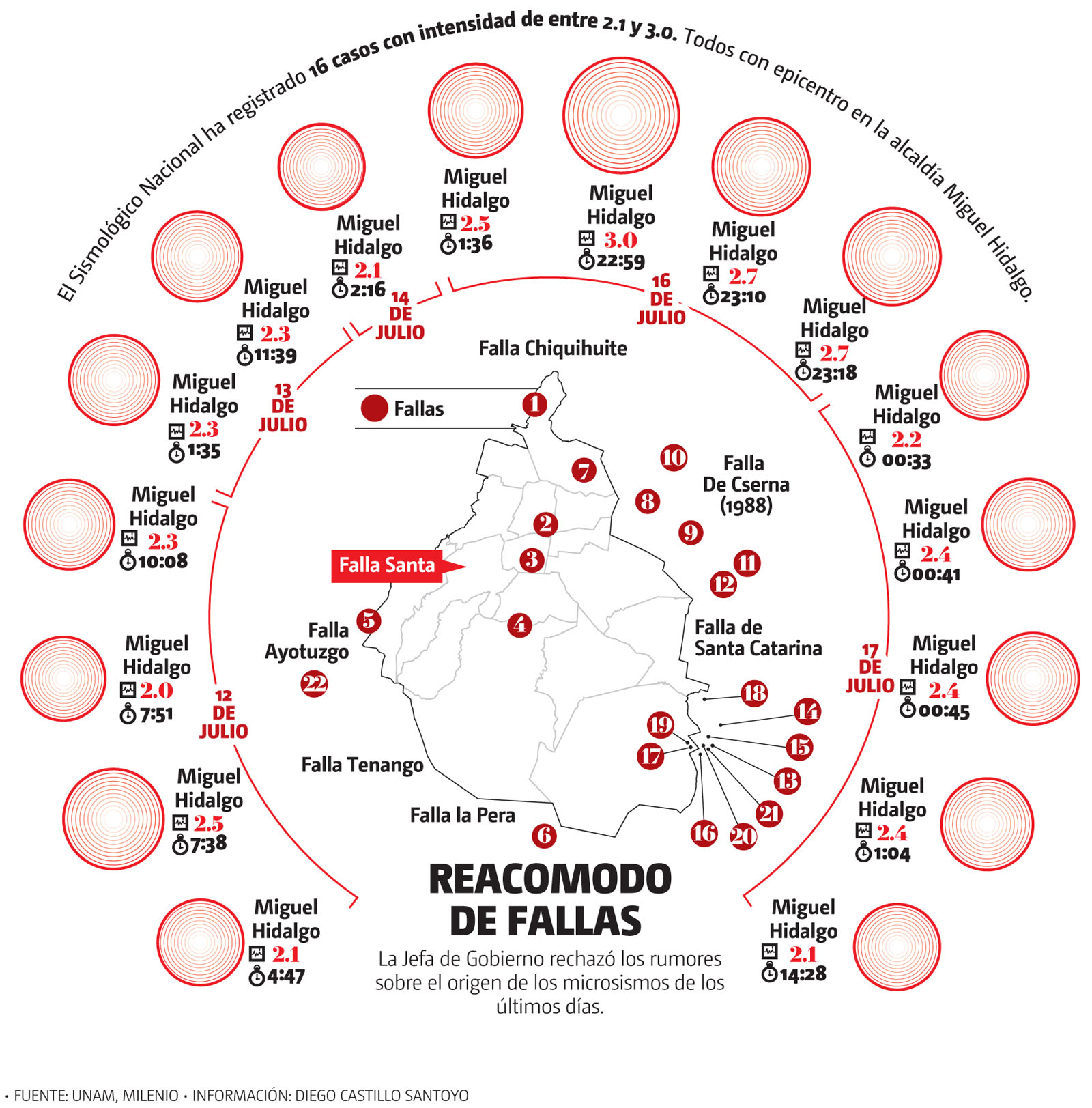 En tanto, Gerardo Suárez, investigador del Instituto de Geofísica en el Departamento de Sismología, reforzó la afirmación de la jefa de Gobierno respecto a que las obras del Metro o la explotación del acuífero no tienen nada que ver con los microsismos.