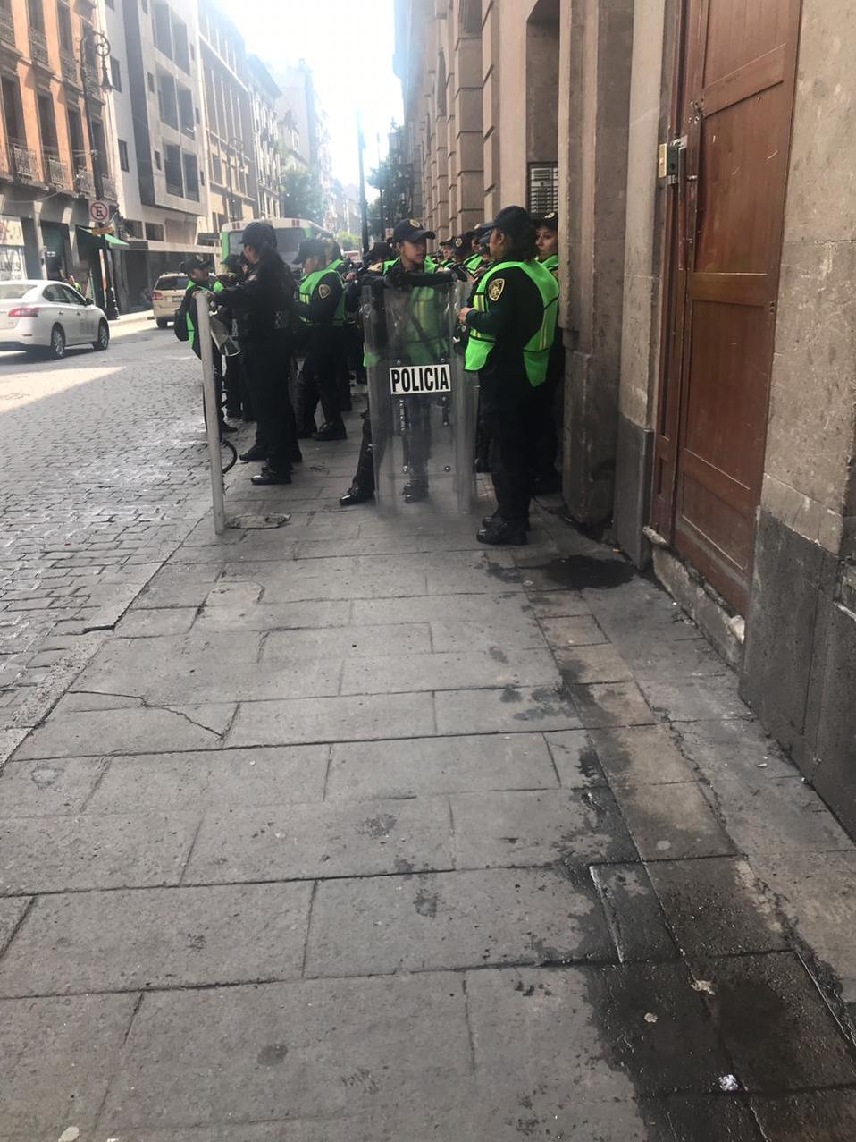 A la altura de 5 de Mayo e Isabel la Católiza se registran enfrentamientos entre elementos de la SSC y encapuchados.